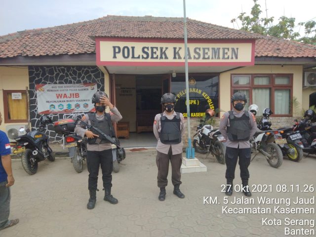 Serang Kota – Polsek Kasemen Polres Serang Kota Melaksanakan Sispam Mako atau Sistem Pengamanan Markas Komando di Polsek Kasemen, Rabu (27/10/2021)