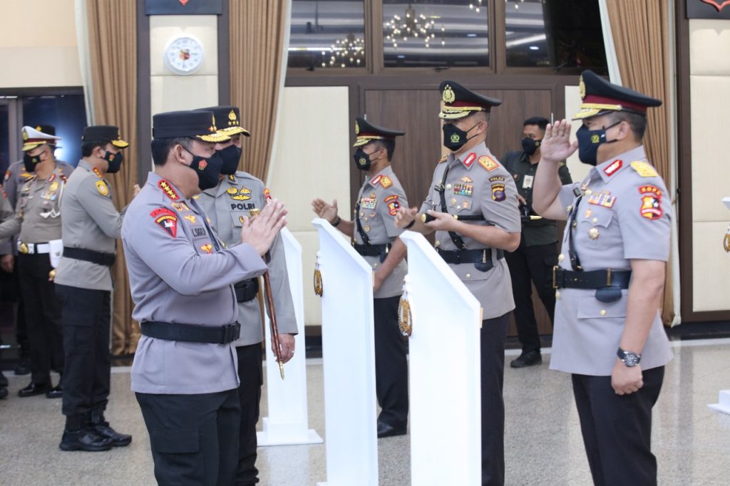 JAKARTA – Kapolri Jenderal Listyo Sigit Prabowo resmi melantik tujuh Kapolda baru dalam upacara serah terima jabatan (sertijab) yang dilakukan di Gedung Rupatama, Mabes Polri, Jakarta, Rabu (29/12).